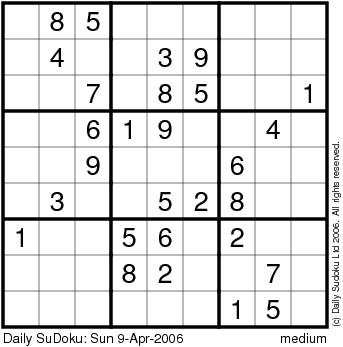 The Daily SuDoku: Sun 9-Apr-2006