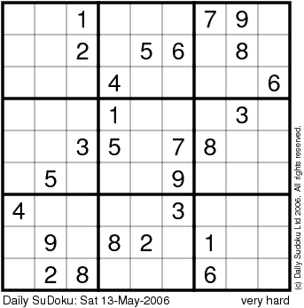 The Daily SuDoku: Sat 13-May-2006
