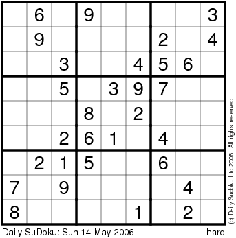 The Daily SuDoku: Sun 14-May-2006