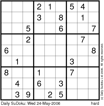 The Daily SuDoku: Wed 24-May-2006