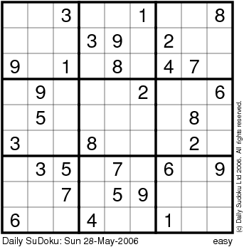 The Daily SuDoku: Sun 28-May-2006