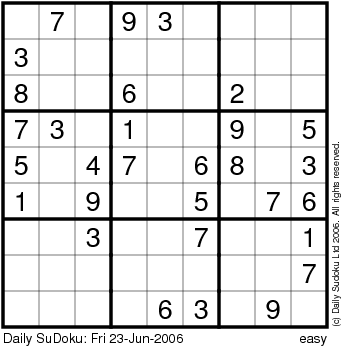 The Daily SuDoku: Fri 23-Jun-2006