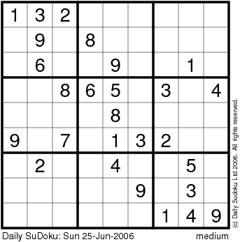 The Daily SuDoku: Sun 25-Jun-2006