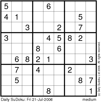 The Daily SuDoku: Fri 21-Jul-2006