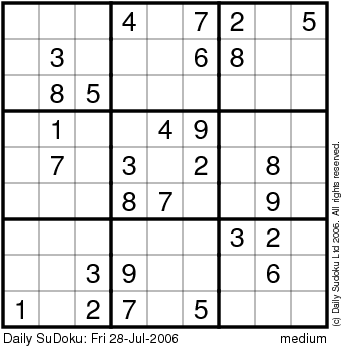 The Daily SuDoku: Fri 28-Jul-2006