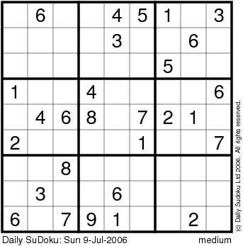 The Daily SuDoku: Sun 9-Jul-2006