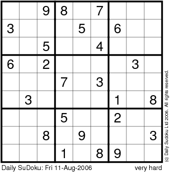 The Daily SuDoku: Fri 11-Aug-2006