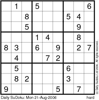 The Daily SuDoku: Mon 21-Aug-2006