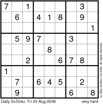 The Daily SuDoku: Fri 25-Aug-2006