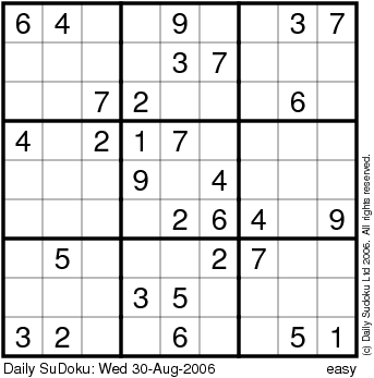 The Daily SuDoku: Wed 30-Aug-2006