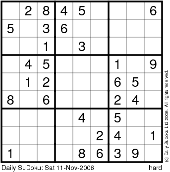 The Daily SuDoku: Sat 11-Nov-2006