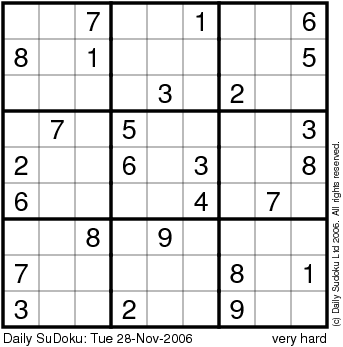 The Daily SuDoku: Tue 28-Nov-2006