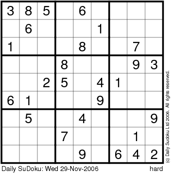 The Daily SuDoku: Wed 29-Nov-2006