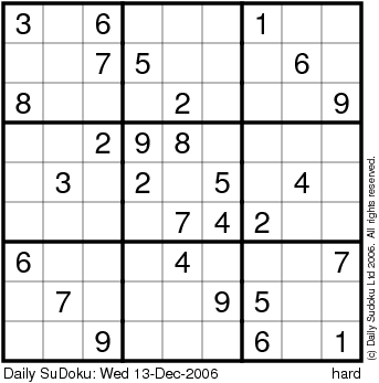 The Daily SuDoku: Wed 13-Dec-2006
