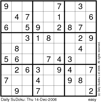 The Daily SuDoku: Thu 14-Dec-2006