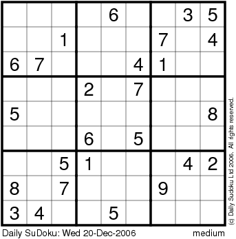 The Daily SuDoku: Wed 20-Dec-2006