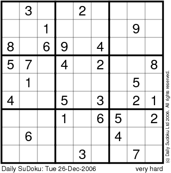 The Daily SuDoku: Tue 26-Dec-2006