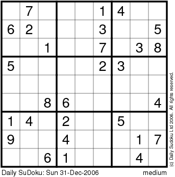 The Daily SuDoku: Sun 31-Dec-2006