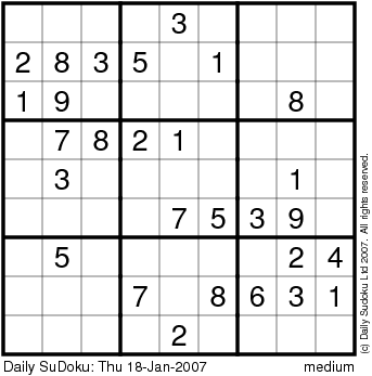 The Daily SuDoku: Thu 18-Jan-2007