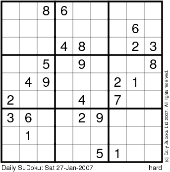 The Daily SuDoku: Sat 27-Jan-2007