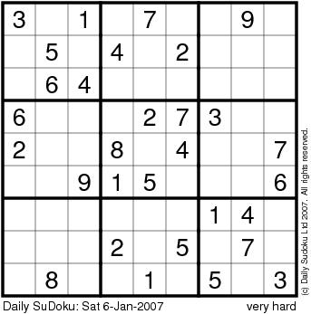 The Daily SuDoku: Sat 6-Jan-2007
