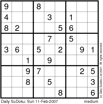 The Daily SuDoku: Sun 11-Feb-2007