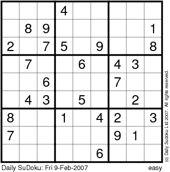 The Daily SuDoku: Fri 9-Feb-2007