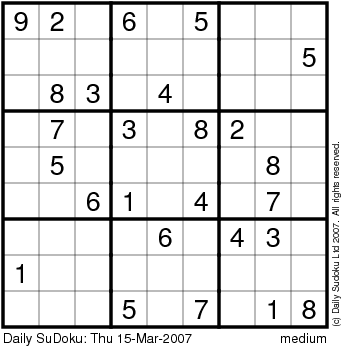 The Daily SuDoku: Thu 15-Mar-2007