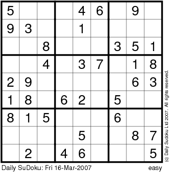 The Daily SuDoku: Fri 16-Mar-2007