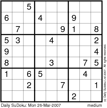 The Daily SuDoku: Mon 26-Mar-2007