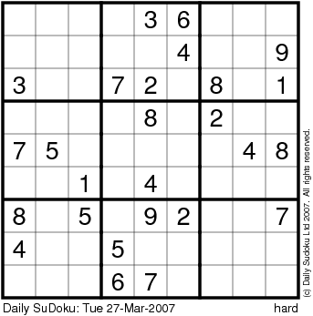 The Daily SuDoku: Tue 27-Mar-2007