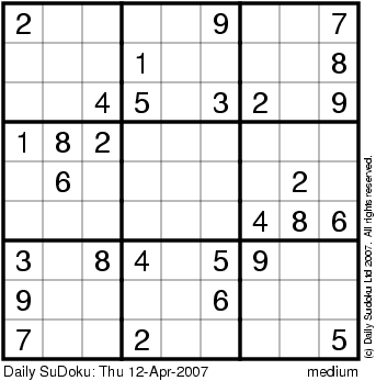 The Daily SuDoku: Thu 12-Apr-2007