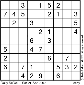The Daily SuDoku: Sat 21-Apr-2007