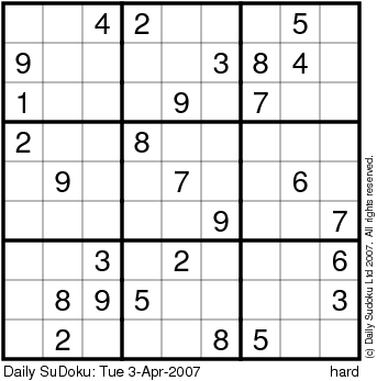 The Daily SuDoku: Tue 3-Apr-2007