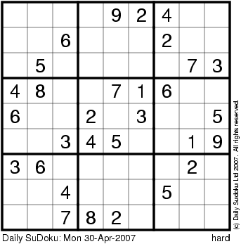 The Daily SuDoku: Mon 30-Apr-2007