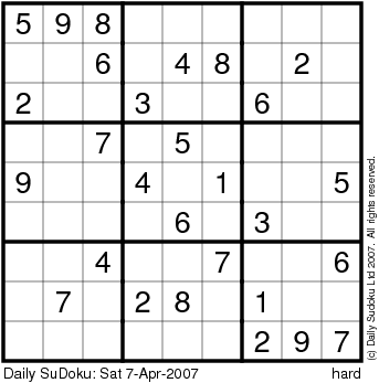 The Daily SuDoku: Sat 7-Apr-2007