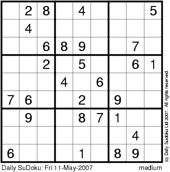 The Daily SuDoku: Fri 11-May-2007