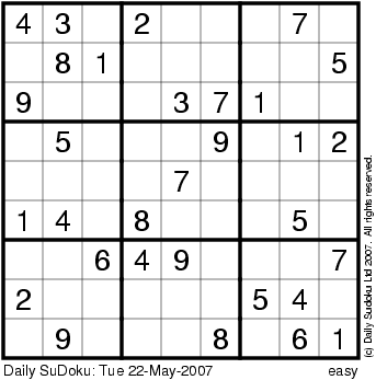 The Daily SuDoku: Tue 22-May-2007