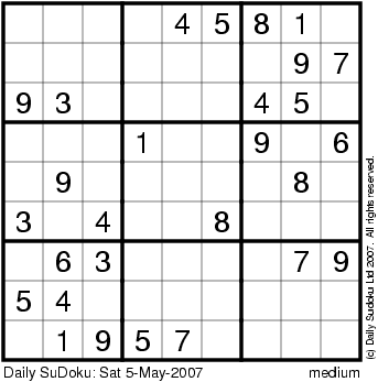 The Daily SuDoku: Sat 5-May-2007
