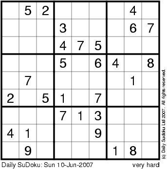 The Daily SuDoku: Sun 10-Jun-2007