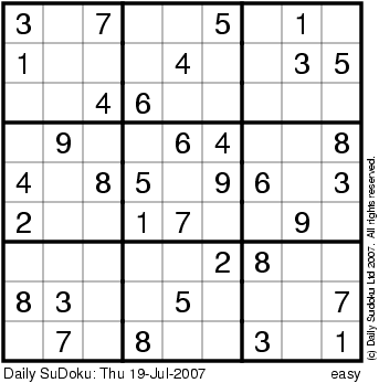 The Daily SuDoku: Thu 19-Jul-2007