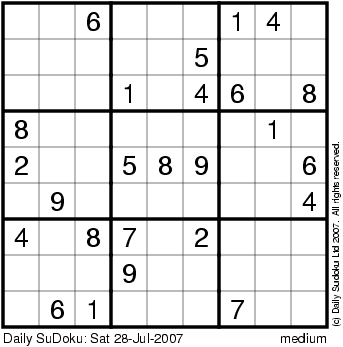 The Daily SuDoku: Sat 28-Jul-2007