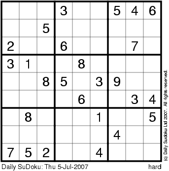 The Daily SuDoku: Thu 5-Jul-2007