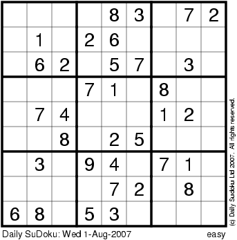 The Daily SuDoku: Wed 1-Aug-2007
