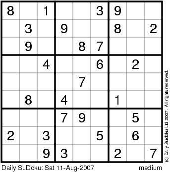 The Daily SuDoku: Sat 11-Aug-2007