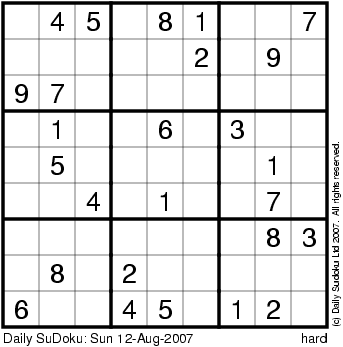 The Daily SuDoku: Sun 12-Aug-2007