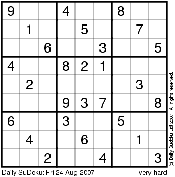 The Daily SuDoku: Fri 24-Aug-2007