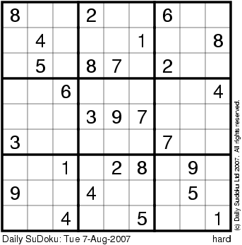 The Daily SuDoku: Tue 7-Aug-2007