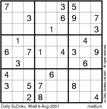 The Daily SuDoku: Wed 8-Aug-2007