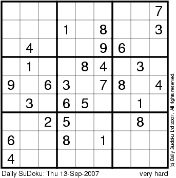 The Daily SuDoku: Thu 13-Sep-2007